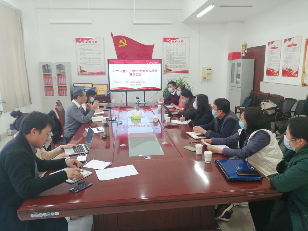 3月23日下午2点,我校2021年度山东省职业教育教学改革研究项目开题会议在图书馆一楼会议室召开,会议采用线上评议与线下汇报相结合的方式进行。学校邀请省内外5名知名教改专家担任评委,副校长张庆会、吕明,教务科研处副主任李海燕出席线下开题会议。