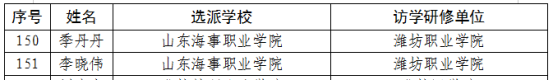 10月11日,山东省教育厅对2022年度职业院校教师访学研修名单进行了公示。学校季丹丹老师、李晓伟老师将到潍坊职业学院将开展为期一年的访学研修。