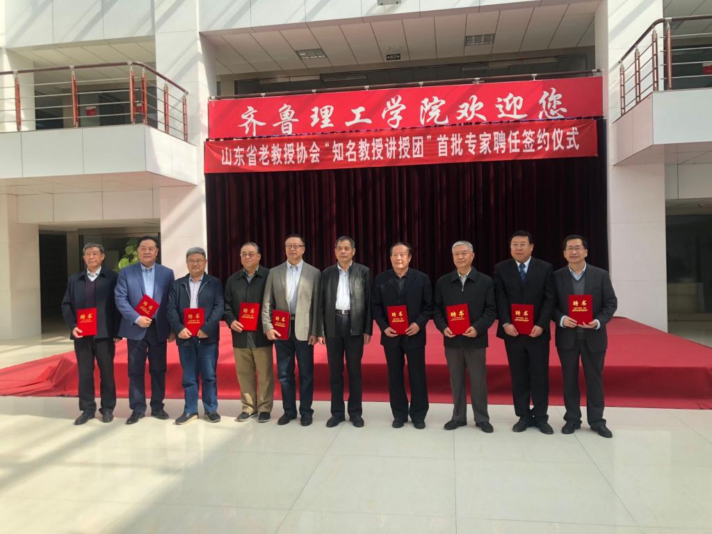 10月30日,山东省老教授协会“知名教授讲授团”首批专家聘任签约仪式在齐鲁理工学院举行。山东省高校工委原副书记、山东省老教授协会常务副会长宋焕新,山东中医药大学原纪委书记、山东省老教授协会副会长兼秘书长毛有高,省老教协有关领导,“知名教授讲授团”成员;齐鲁理工学院院长,山东省老教授协会副会长常翠鸣出席会议。有关高校负责人参加会议。