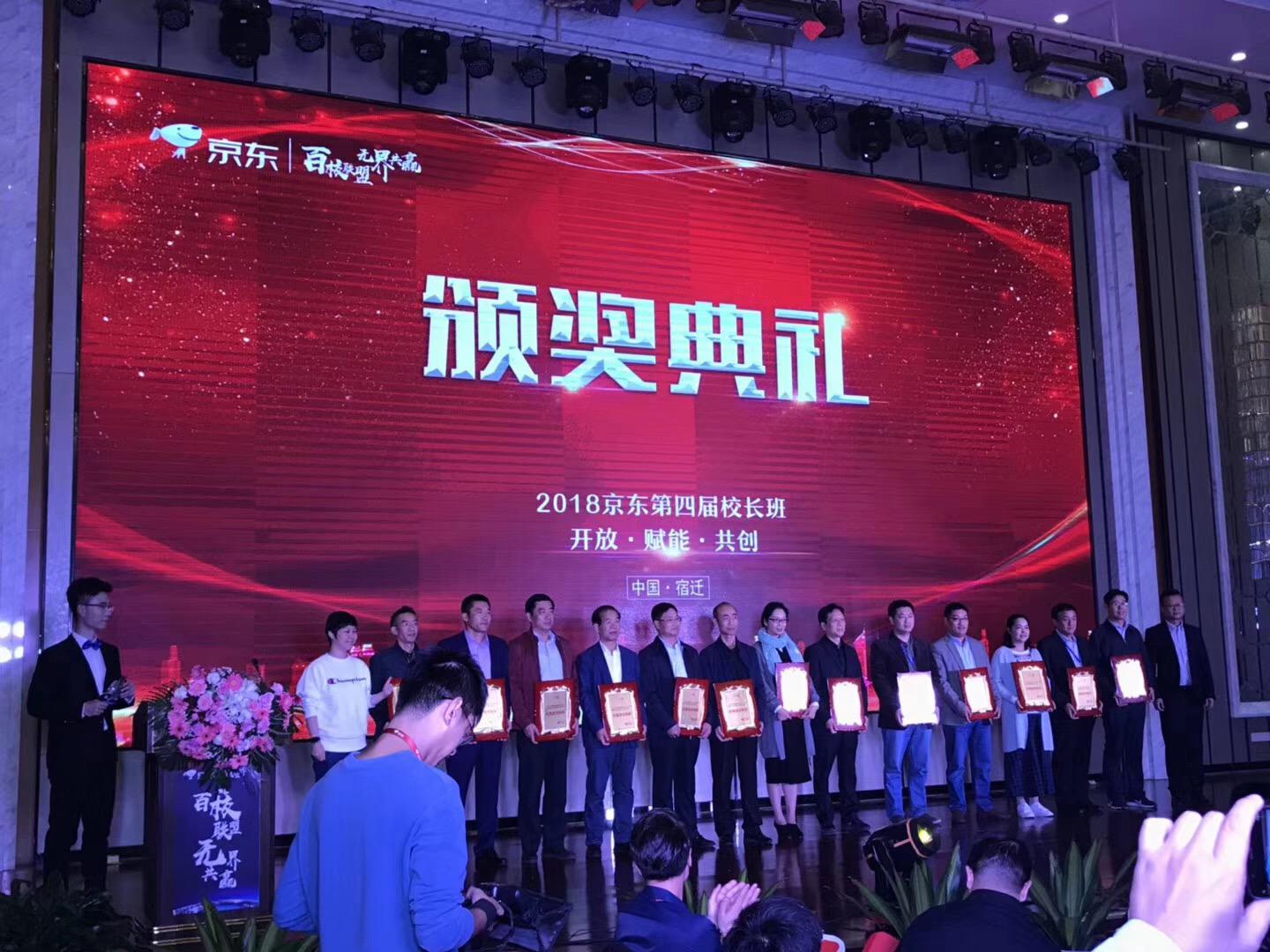 鉴于我院与京东的良好合作,我院荣获京东“优秀合作院校”奖,获得该奖项的一共有十四所院校。在本次京东校长班上我院院长王敬良领取了该奖项。