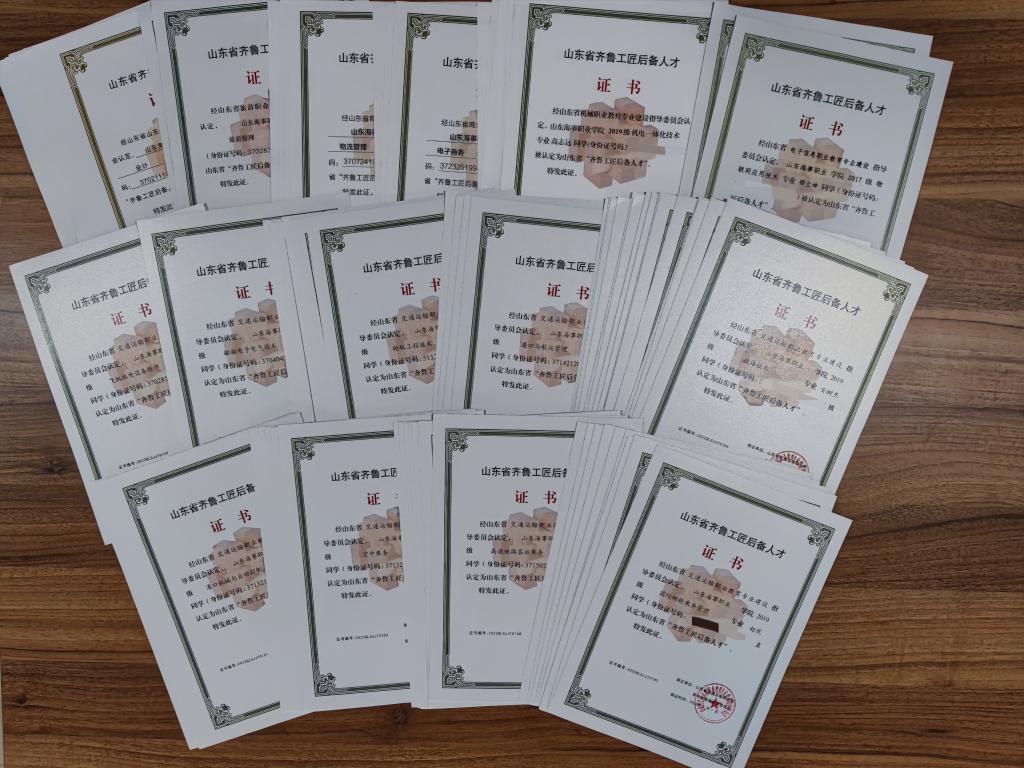 根据《山东省教育厅关于实施“齐鲁工匠后备人才”培育工程的通知》(鲁教职字〔2018〕25号)、《山东省教育厅关于做好2021年度“齐鲁工匠后备人才”培育工作的通知》(鲁教职函〔2021〕42号)等文件要求,经遴选推荐、人才培育、终期考核、审核认定等程序,学校有81名学生入选第二批“齐鲁工匠后备人才”认定名单。其中,交通运输专指委认定51名,财经专指委认定12名,商业专指委认定8名,机械专指委认定6名,旅游专指委认定2名,电子信息专指委认定2名。涉及航海技术、轮机工程技术、国际邮轮乘务管理、港口与航运管理、会计、电子商务、空中乘务、高速铁路客运乘务等15个专业。