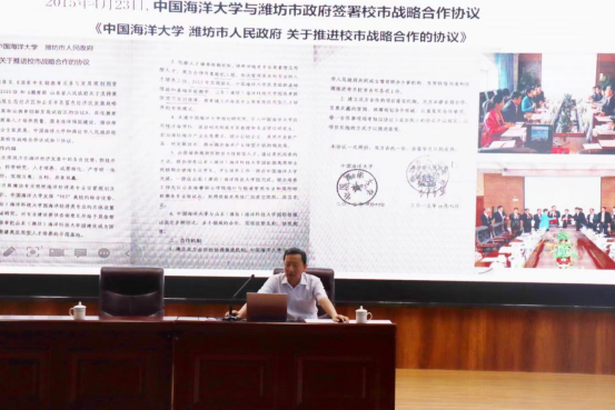 会上,刘玉强教授首先介绍了中国海洋大学以及两校“联合培养”办学情况。他表示山东海事职业学院作为中国海洋大学合作的唯一一所高职院校,双方的合作开启了985、211教育部部属高校助力地方职业教育发展的先例。该项目重启后,双方将进一步合作共建山东海事职业学院“第一批计划升本专业”,中国海洋大学重点在本科专业学科建设、专业人才培养方案、师资队伍建设等方面给予合作共建,助推特色品牌专业建设,强化学校办学特色,推动学校办学层次的高质量发展。同时,特别强调我校新生将与海大学生同学习同生活,享受了985、211国家重点大学的优质教育资源,感受国家一流大学浓厚的学习氛围,使我校学生在海大教师的引领下不断提高学习理念和知识水平。
