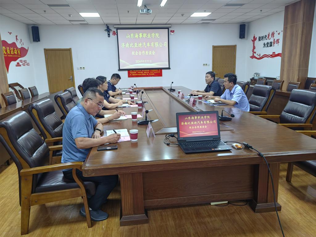 2024年9月11日,济南市起步区大桥街道副主任付温祥与济南比亚迪汽车有限公司十一事业部经理蒋靖宇一行莅临学校,共同探讨校企合作及开展实践教学相关事宜。学校校长助理张娣,以及教务科研处、校企合作处、机电工程学院、港航管理学院、智能与信息工程学院等相关单位负责人出席此次座谈交流活动。
