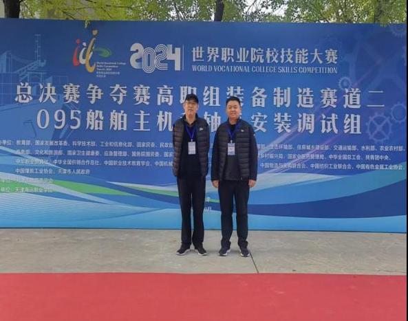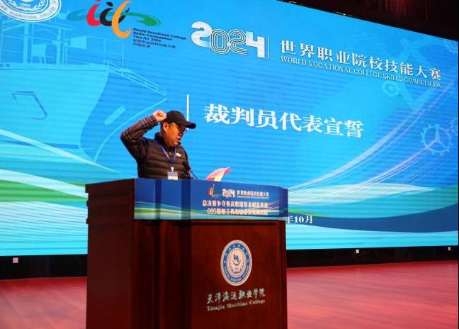 近日,2024年世界职业院校技能大赛总决赛争夺赛装备制造赛道—船舶主机和轴系安装调试赛项在天津海运职业学院开赛。我院陈勇老师、孙志元老师受邀聘为本次赛项的裁判员,陈勇老师还作为裁判宣誓人,在大会开幕式上代表全体裁判员发言宣誓。
